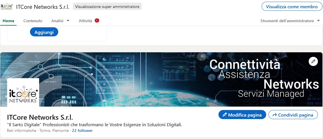 Linkedin: è ora disponibile la pagine social di ITCore Networks