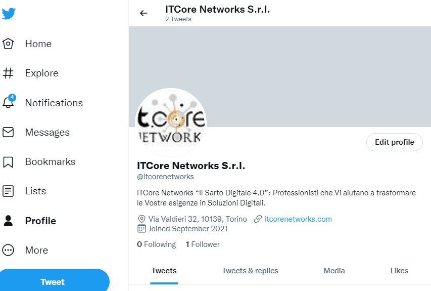 Twitter: è ora disponibile la pagine social di ITCore Networks