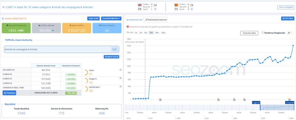 Perche Veterinari.it è il sito n.55 di 3209 in categoria Animali e in un solo anno è salito in cima dalla posizione n. 2510