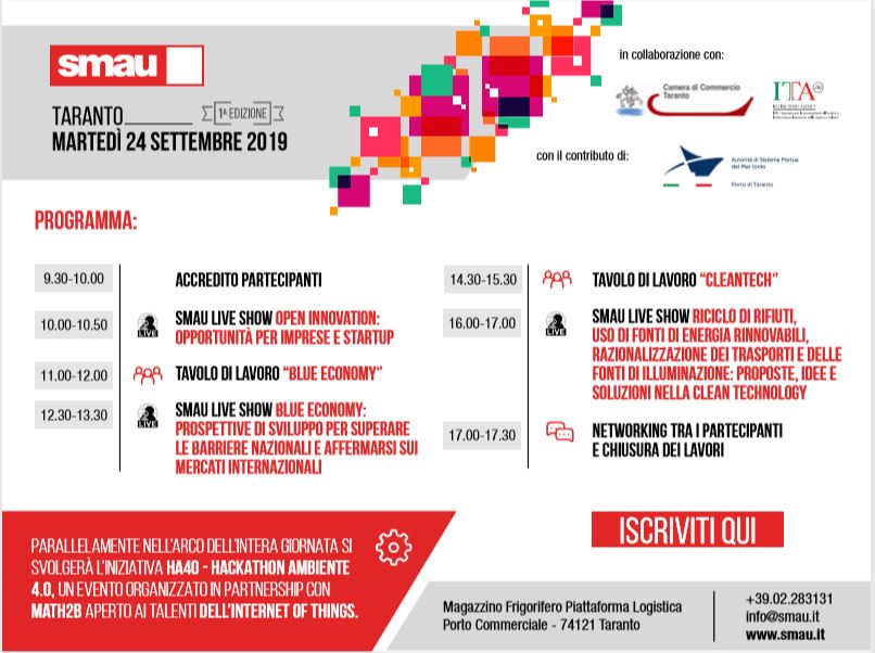 L’iniziativa, che nasce dalla collaborazione tra ICE-Agenzia, Camera di Commercio e Smau, con il contributo dell’Autorità di Sistema Portuale del Mar Ionio – Porto di Taranto, sarà l’occasione per mettere in connessione imprese del territorio e startup per condividere esperienze di sostenibilità e dar vita a nuove collaborazioni.
