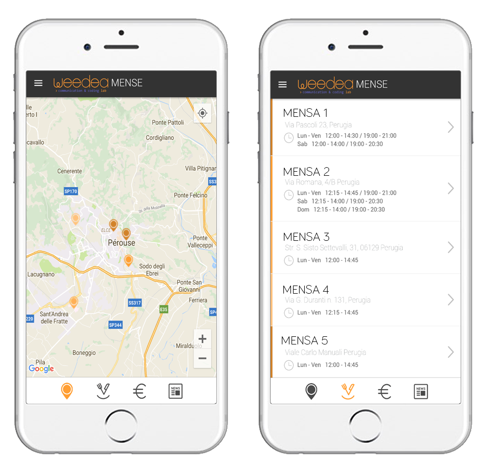 - Visualizzare la mappa delle mense con attivazione di navigatore per raggiungerle